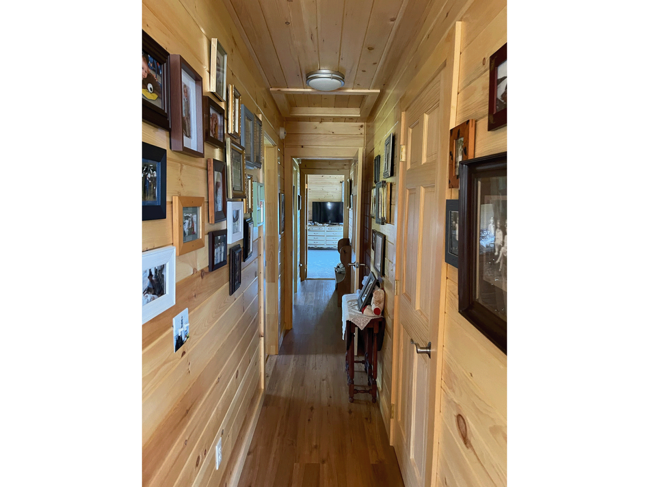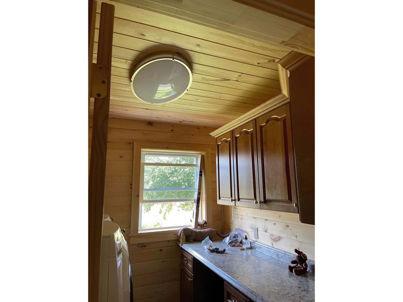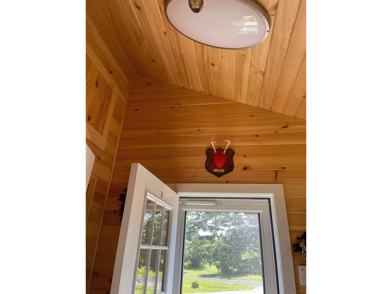 Return to Full Portfolio Wood shiplap ceiling with inset lighting in living room. Coastal bedroom with painted cream shiplap. Wood angular ceiling Bedroom with shiplap painted a light mint green. Wood ceiling and walls and a window that looks out upon a lawn. Bedroom closet with wood doors View of the hallway from the wood panel bedroom. Post with wood slat walls and ceiling with finished corners. Wood walls and ceiling in the living room with fan. Living room with wood slat ceiling and trim overlooking the patio and yard/ Additional sitting room with finished wood slat ceiling and walls creating a cabin or cottage aesthetic. Two triangular windows with angular ceiling in wood shiplap Wood trim along the ceiling in the living room Wood slats at a unique angle around door entryway Hallway showcasing wood slat shiplap. Cabin-style bathroom with wood walls and ceiling. Bathroom vanity New window in bathroom Wood trim surrounds a window above a bathroom toilet.
